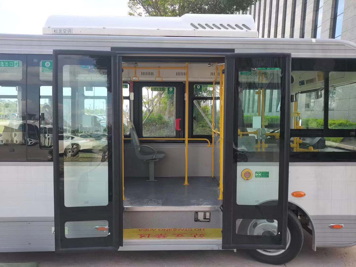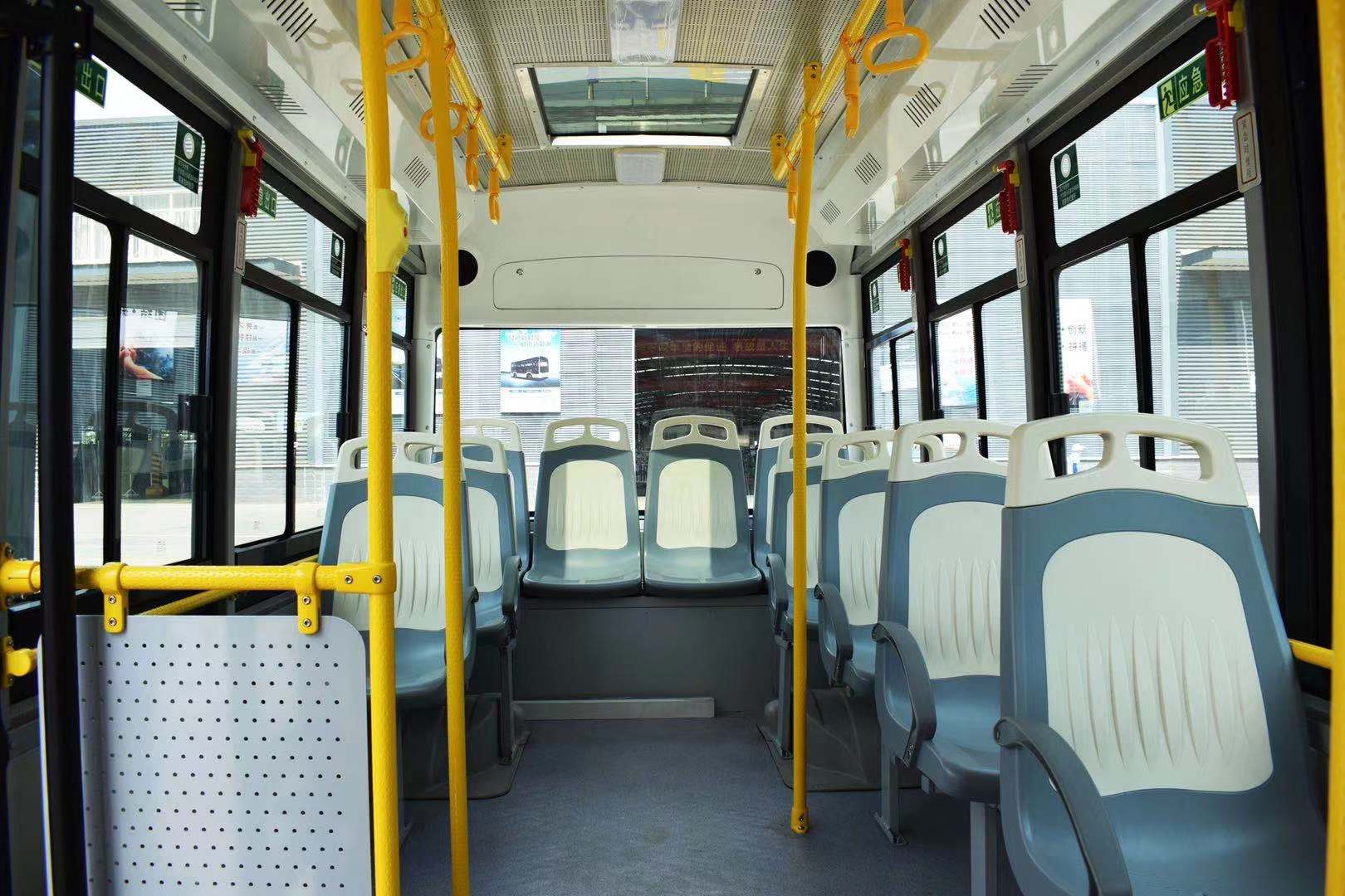 車輛介紹:個性化風格設計,造型新穎,引用熊貓臉特征元素,活潑動感,形象更具親和力。邊框、腰線及下裙保留鋁合金色,外觀質感強。搭載高效集成驅動電機和多合一控制器,采用隧道腔梁式電池倉獨立結構,底架防撞結構。整車小巧輕便,更適合城鄉(xiāng)微循環(huán)公交應用。